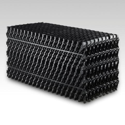 • 耐溫性是其主要短板:PVC的熱變形溫度相對較低(優質改性PVC可達70-85℃)。長期在高溫(如持續高于50℃)下運行,增塑劑可能遷移,材料易發生蠕變(緩慢變形)、軟化,導致填料片下垂、波紋塌陷,通道堵塞。因此,明確 “冷卻塔填料是什么材質” 為PVC時,必須嚴格評估其長期運行水溫。